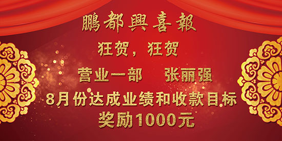 祝賀營業(yè)一部張經(jīng)理獲得8月月獎